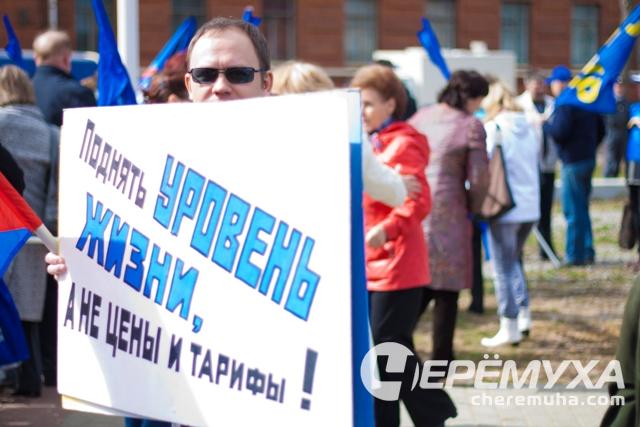 Рыбинцы не упустили возможность помитинговать под звуки оркестра, с транспарантами в руках и под реющими флагами.