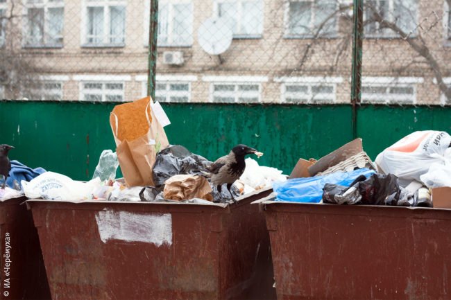 мусор, отходы, контейнер, урна, экология, ворона