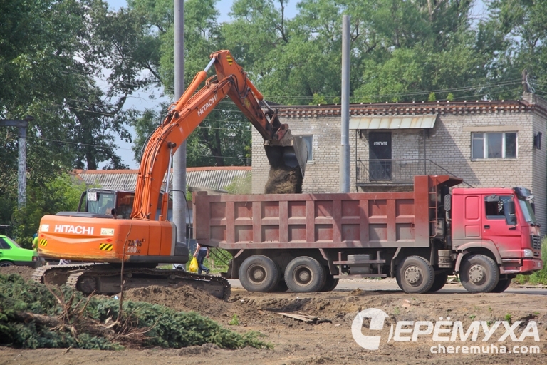 Эти кадры сняты накануне, 17 июля, в 11 часов утра. На строительной площадке мы насчитали около десяти человек, два экскаватора и два грузовика.