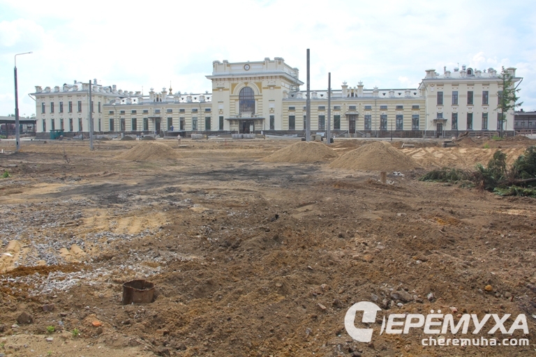 Вот так выглядит сейчас Привокзальная площадь. Как видно, работы в самом разгаре. Строители и дорожники трудятся в поте лица, чтобы всё успеть в срок: