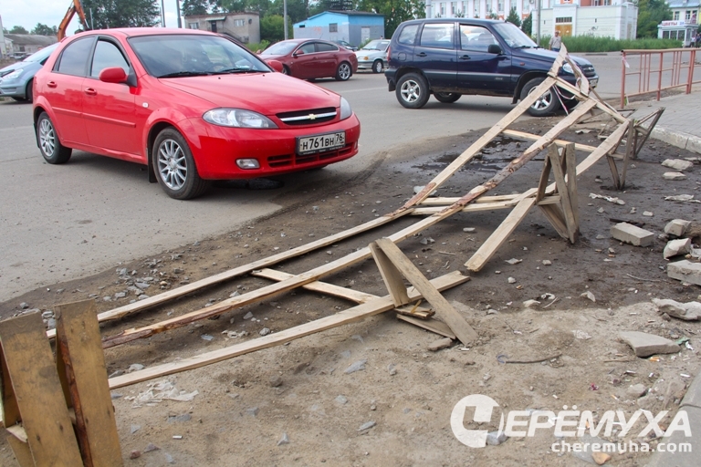 Поражает, что зона работ не имеет никакого ограждения, что явно нарушает нормы законодательства. На перерытой территории много ям и колодцев, повсюду торчат проволока и провода, однако доступ сюда ничем не ограничен, разве что наспех сколоченным подобием заборчика. В Рыбинске как-то совсем не привыкли заботиться о безопасности. Здание бывшей столовой на Авиационной улице ранее сносили, оградив площадку лишь красной лентой.