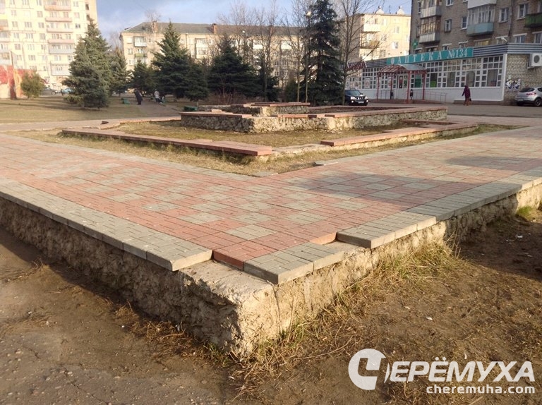 Та советская плитка, которая исчезла из центра города ещё в начале нулевых, до сих пор основное и единственное покрытие площади. Пара декоративных фонарей стоят, покрытые ржавчиной, и не работают уже долгие годы. Сама стела Жукову, одному из главных имён нашей Победы, выглядит так, будто со времен установки о ней больше не вспоминали. Краску на металлических элементах заменила всё та же ржавчина, покрытая в некоторых местах вандальными надписями.