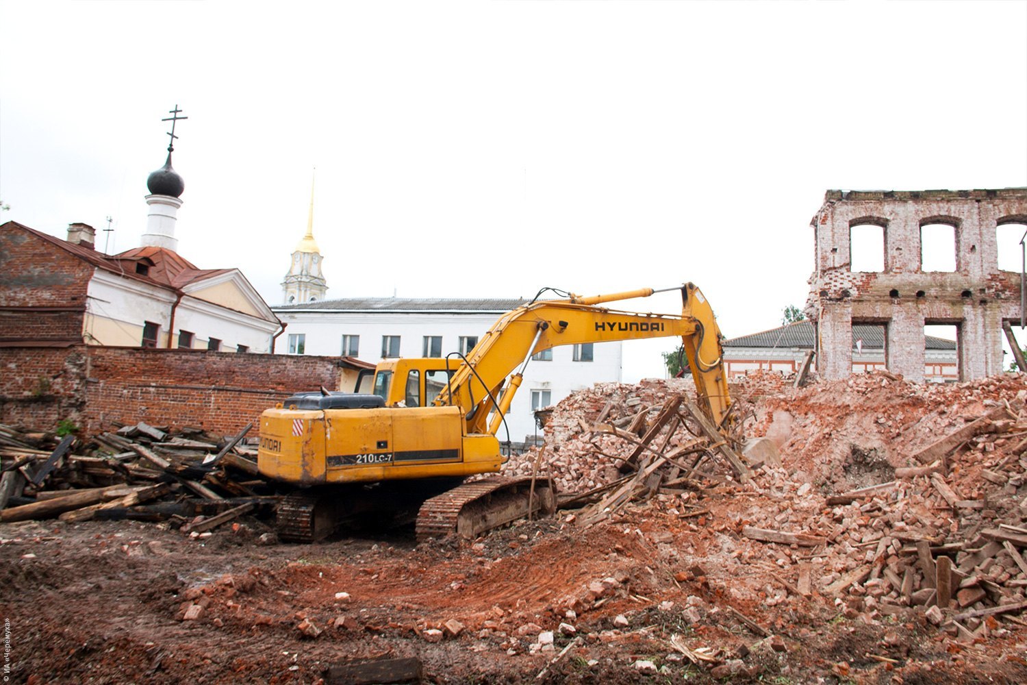 разруха, центр, разрушение, кирпичи, историческое наследие, эскаватор