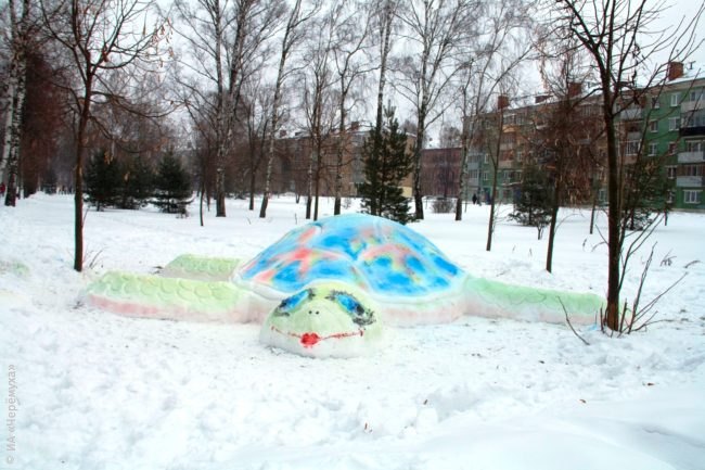 снежные фигуры-2018, Волжский парк, крепость, снег, черепаха