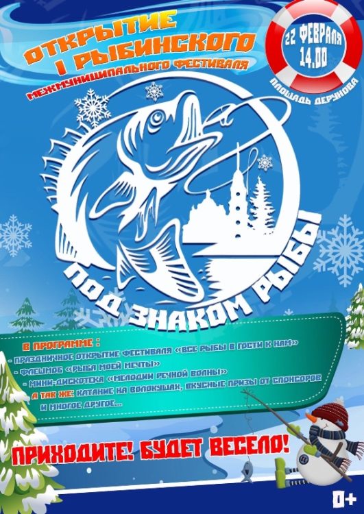 22-го февраля в Рыбинске начинается фестиваль «Под знаком рыбы». Открытие состоится на площади Дерунова в 14 часов. Девиз праздника «Все рыбы в гости к нам». Организаторы обещают устроить флешмоб «Рыба моей мечты» и дискотеку «Мелодии речной волны».