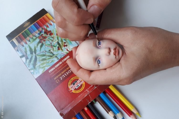 В руках у мастерицы небольшой комок мягкой пластики. Постепенно из бесформенного куска появляются черты человеческого лица: добавляются объёмы, прорисовываются губы, крошечный нос, глаза, веки. Для работы Ольга использует стоматологические инструменты — они позволяют вылепить мелкие детали: уши, нос, ногти на крошечных пальцах.