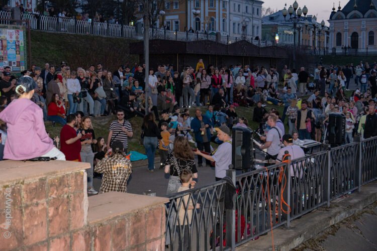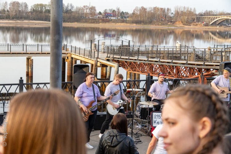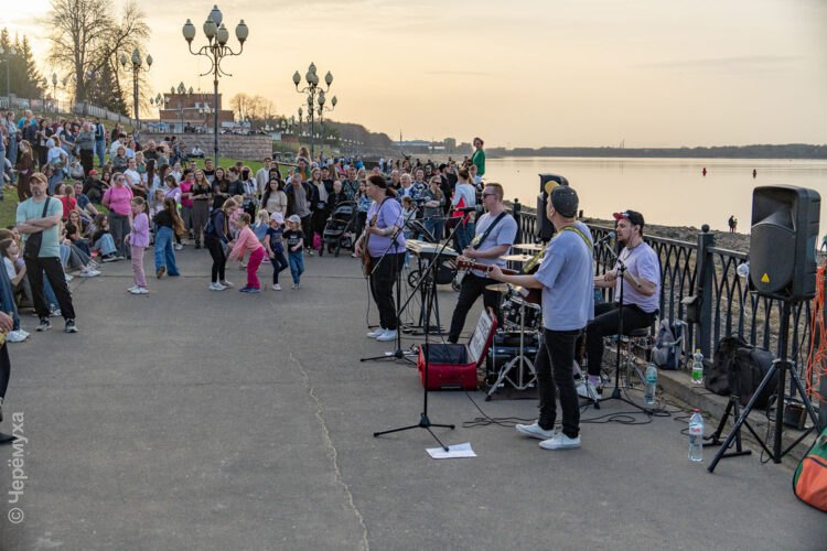 Необыкновенно тёплый апрельский вечер, многочисленные зрители и музыка. В минувшую субботу группа «КаверХит» открыла сезон уличных выступлений в Рыбинске. Местом встречи по традиции стала Волжская набережная у причала.