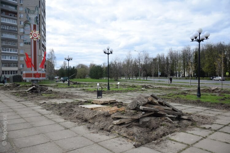 Напомним, в 2020 году, выделив деньги из рыбинского бюджета, на площади обновили стелу, баннеры и скамейки, высадили деревья и установили две пушки. С бетонных стендов, не попытавшись восстановить, тогда сбили смальту.
