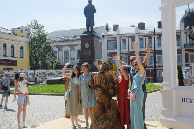 На площади установили информационные стенды, декоративные фигуры, организовали активности — например, гости могли попробовать силы в резьбе по дереву с помощью современных инструментов. Это помогло скрасить ожидание начала.