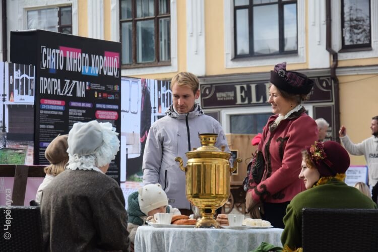 — Мне очень понравилось, очень атмосферно. Люди между собой общаются. Красиво и душевно. Особенно понравилась локация, где бабушки сидят, чай пьют, с ними можно сфотографироваться. Фотографии получаются живые. Ещё понравилась локация рядом с гримёркой, — там ощущение, будто ты в фильме, — поделилась впечатлениями Мария.