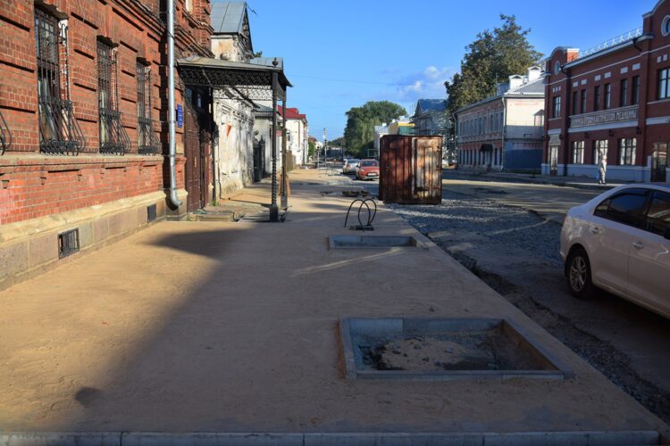 Выход на финишную прямую. Так характеризуют ход ремонта улицы Чкалова в администрации Рыбинска, сообщая, что подрядчик уже выполнил 95% работ по формированию тротуаров и мощению их плиткой. Параллельно проезжую часть готовят к асфальтированию и устанавливают опоры для фонарей.