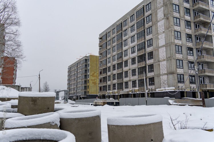 Первый камень комплекса из четырёх домов заложили в микрорайоне Прибрежный весной 2024 года. Квартиры в квартале предназначены для сотрудников промышленно-оборонного комплекса. Это строительство — совместный проект госкорпорации Ростех, Промсвязьбанка и администрации Рыбинска. Завершение работ анонсировали на 2025-й. Но уже очевидно, что срок сдачи дома переносится. Текущая стадия — на фото: