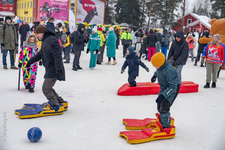 — Сегодня у нас работают четыре волонтёра в ростовых куклах — они фотографируются со зрителями. Также есть игровые станции: «лыжибол» и «кубибол». Огромной популярностью пользуются «Ласты», к ним даже выстраивалась очередь. В основном участвуют дети, но и взрослые, с удовольствием присоединяются. Сегодня здесь сложилась по-настоящему семейная, тёплая атмосфера, — отметила Вероника Клиншова, специалист «Максимума».