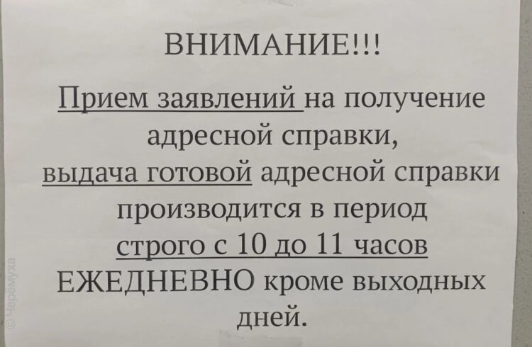 Чтобы получить адресную справку, нужно отстоять очередь — так сложилось во вторник, 24 марта, когда в рыбинское межмуниципальное управление МВД за документом пришла корреспондент «Черёмухи» Александра Кузнецова. С сентября пункты «Информационно-расчётного центра» прекратили выдачу таких справок. В рыбинской полиции подтвердили, что иногда бывает большой запрос на услугу и образуются очереди. Чаще всего в «пункт» на улице Свободы, 3а, по словам специалистов, обращаются пожилые, которым сложно воспользоваться госуслугами.