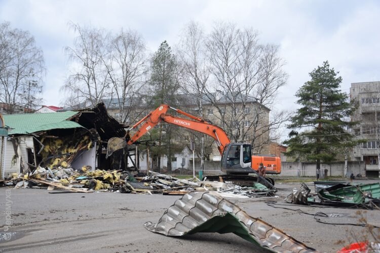 Сегодня на территории «Гостиного двора» работал экскаватор, который сносил павильоны, сгоревшие ранее. Напомним, с момента предыдущего пожара ещё не прошло и недели.